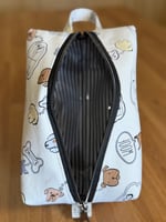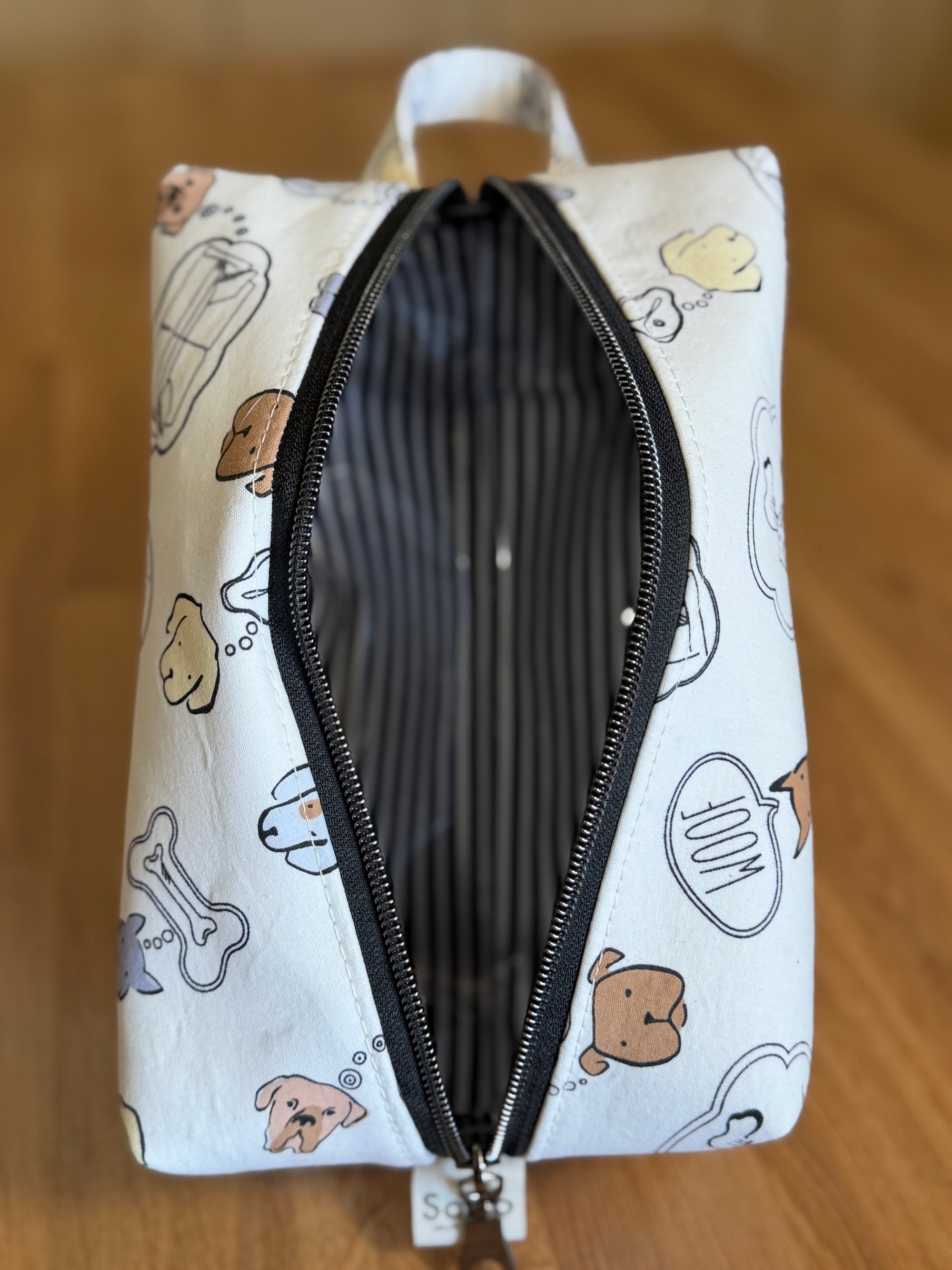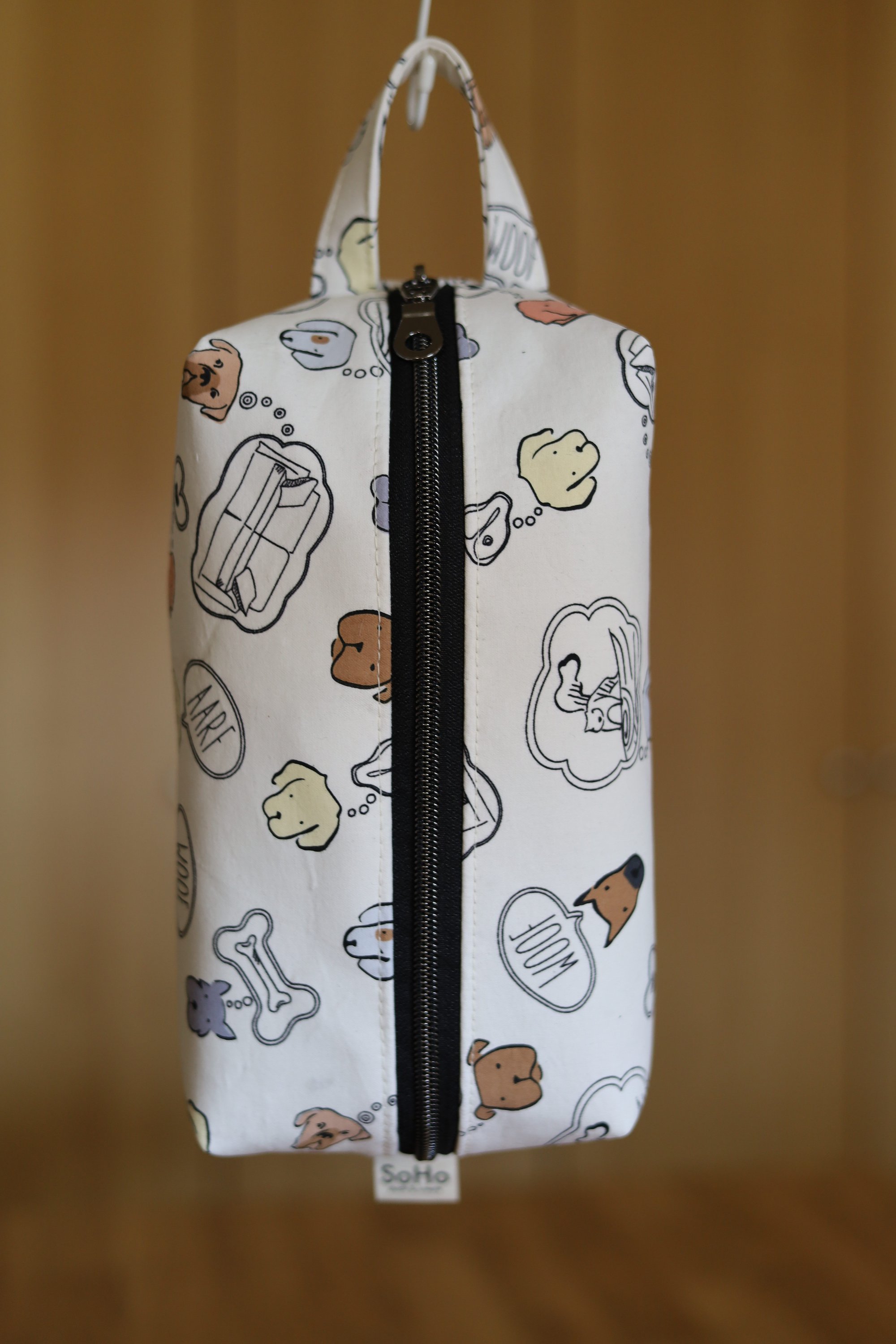Toiletry bag perfect for your travels. The Billie will fit all your toiletries. It is lined with clear vinyl, allowing for easy clean up. Handle fits easily over a door knob or towel hook. Exterior fabric has been treated with a latex-based water repellent.