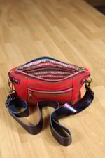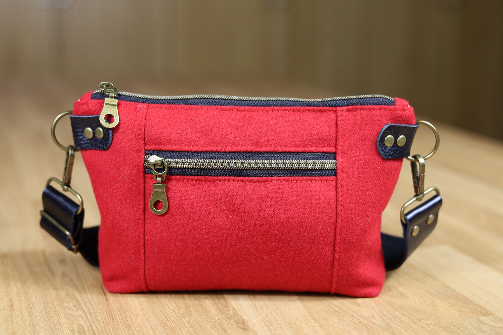 Exterior fabric is a gorgeous red wool. Interior is lined with a vintage cotton.